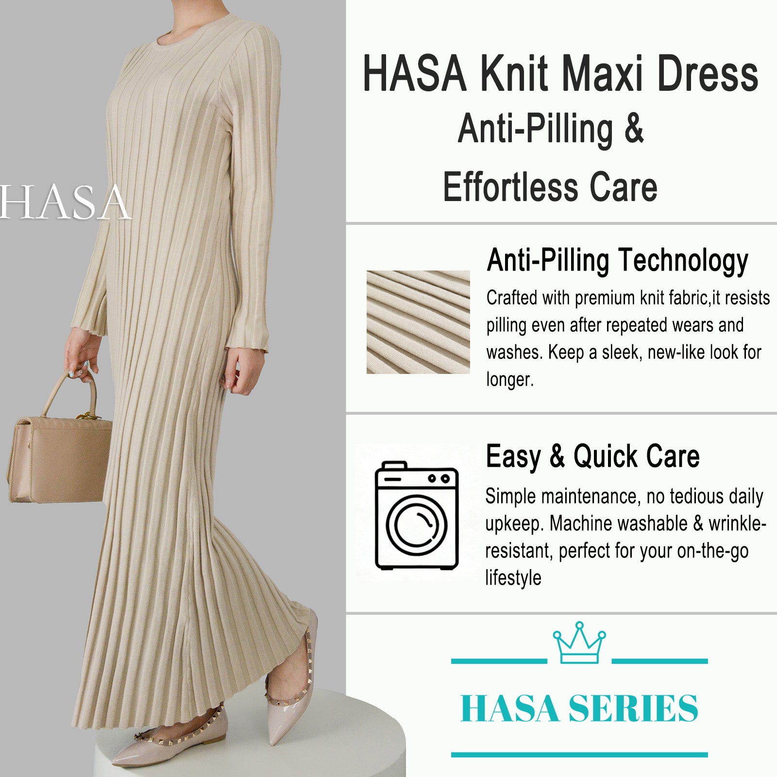 HS0116 Solid colour knitted long dress in Loose fitting waist