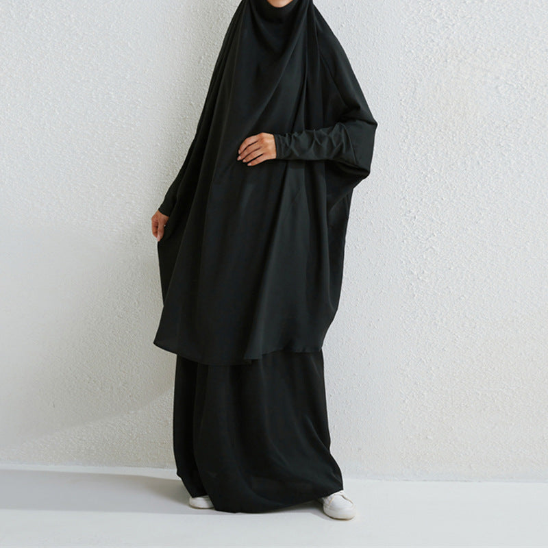 HS0430 Two-Piece Set jilbab Solid Color Swing Top and Skirt