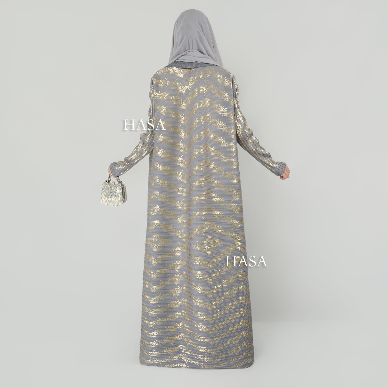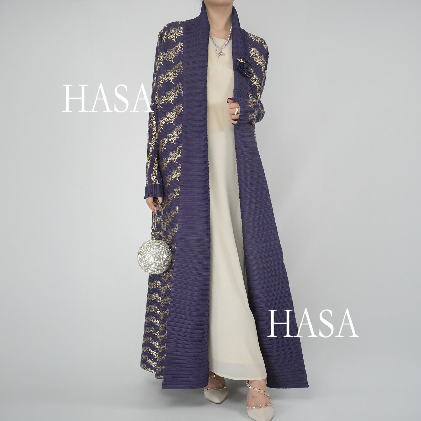 HS6158 Solid Long Sleeve Pleated Abaya with Artisan Sequin Work