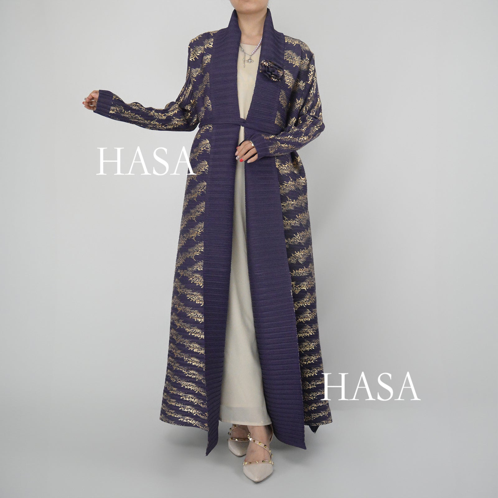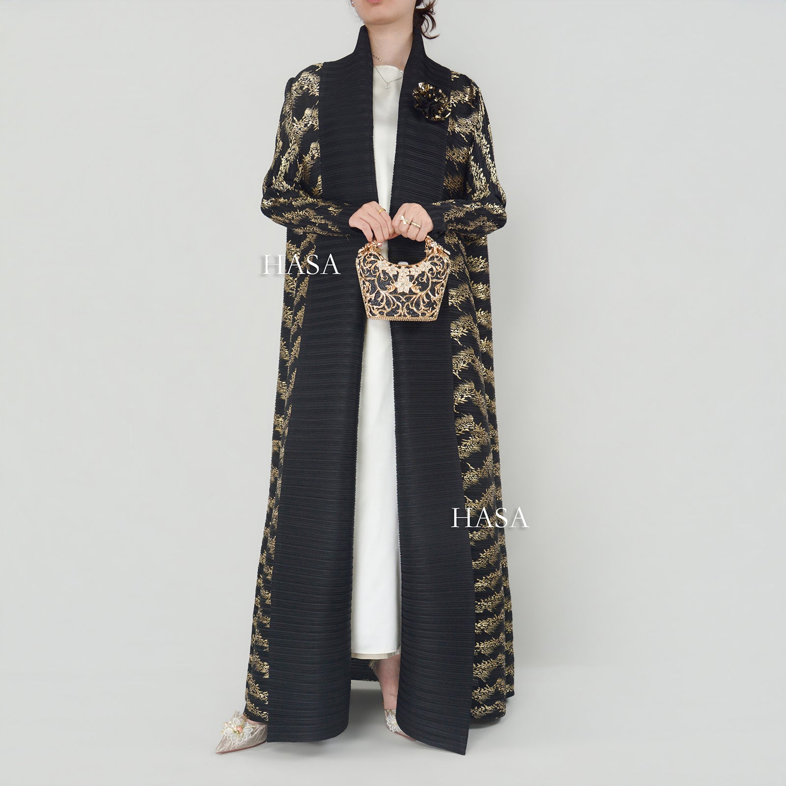 HS5838 Gold-stamped Pleated Long Cardigan with Belt