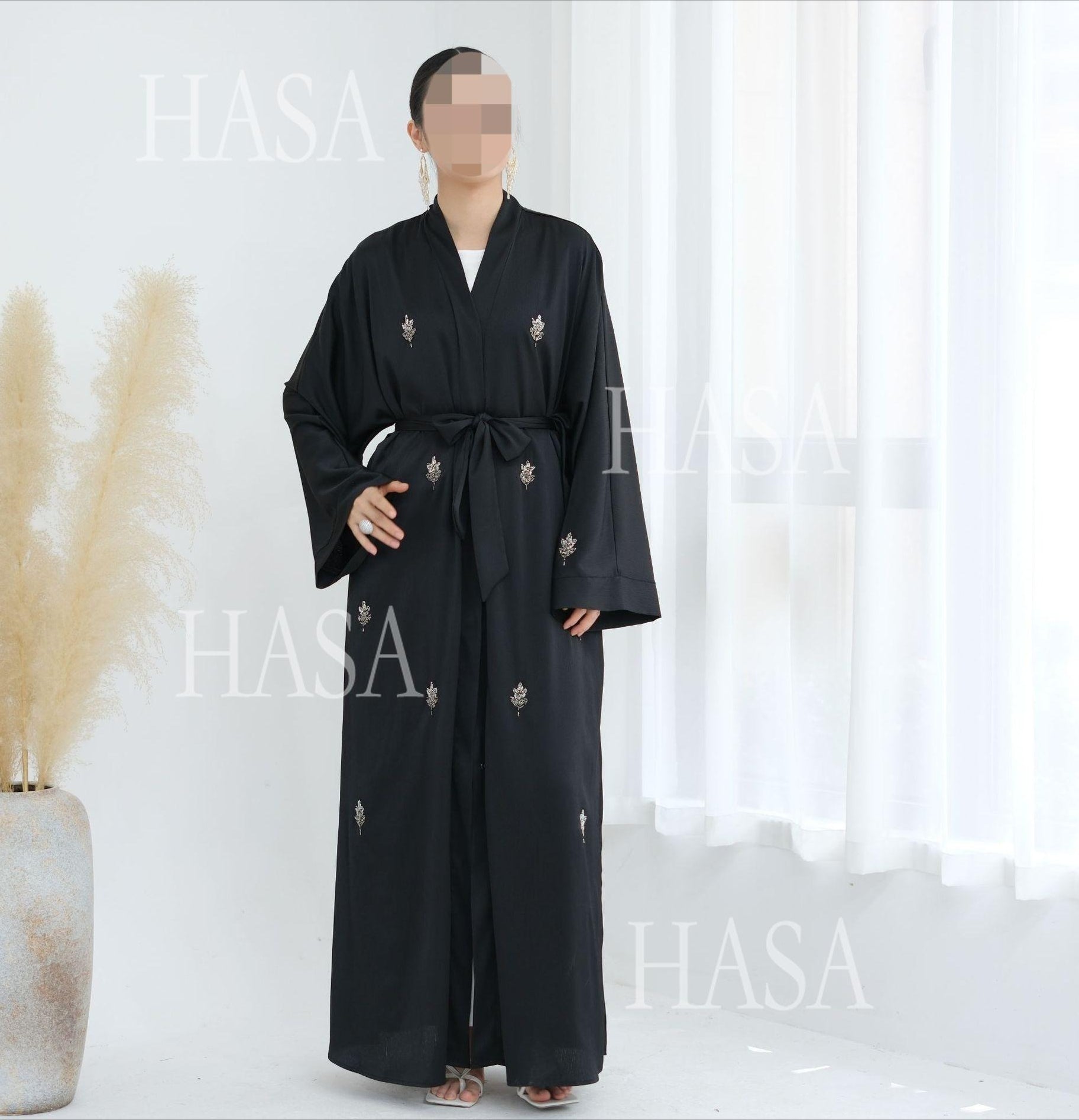 HS6624 Abaya Cardigan with Beaded Lace-up