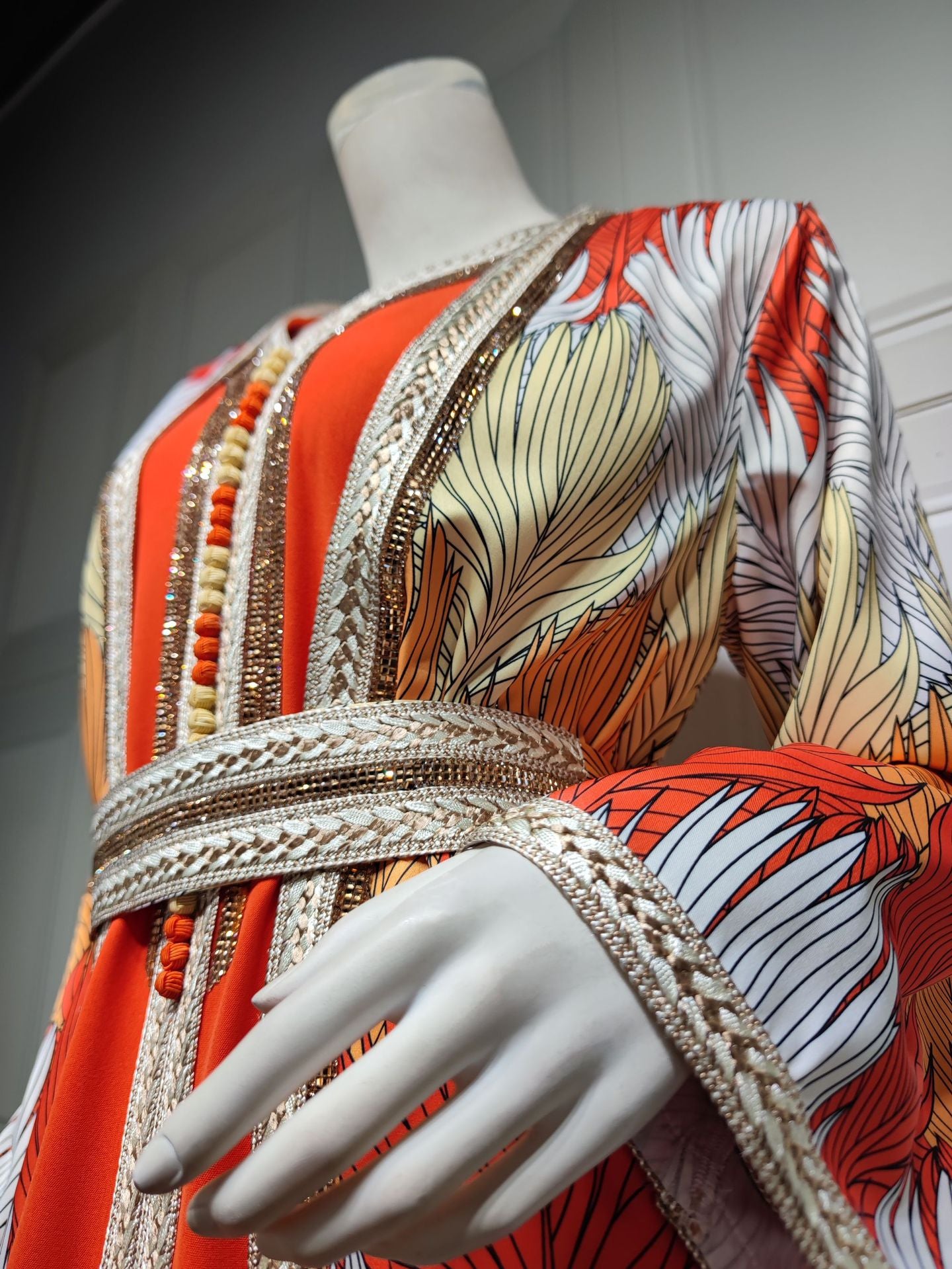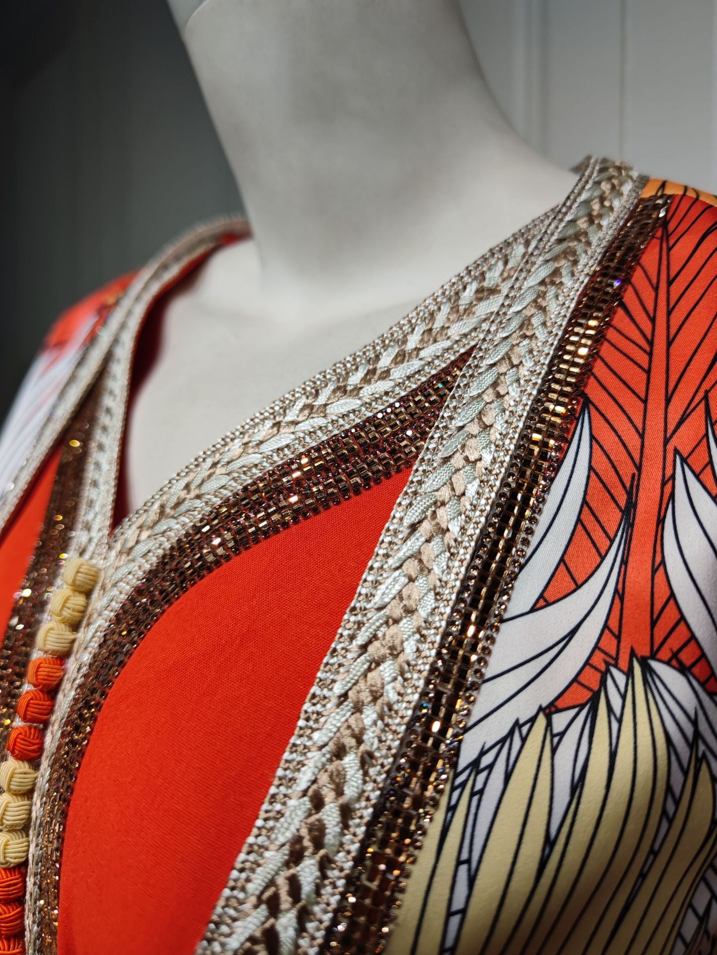 HS6646 Long-sleeved woven ribbon rhinestone print robe set with exquisite rhinestone design.