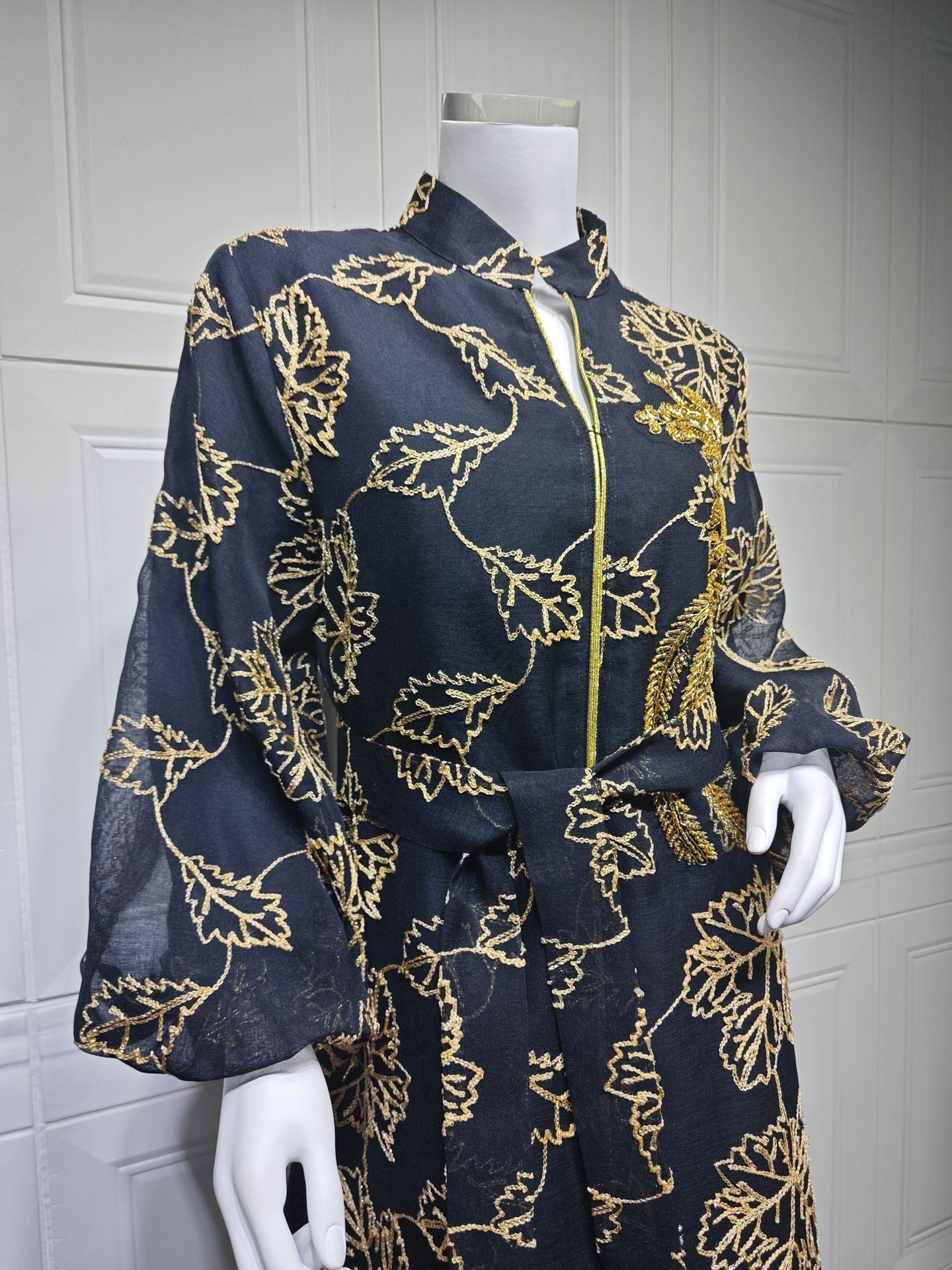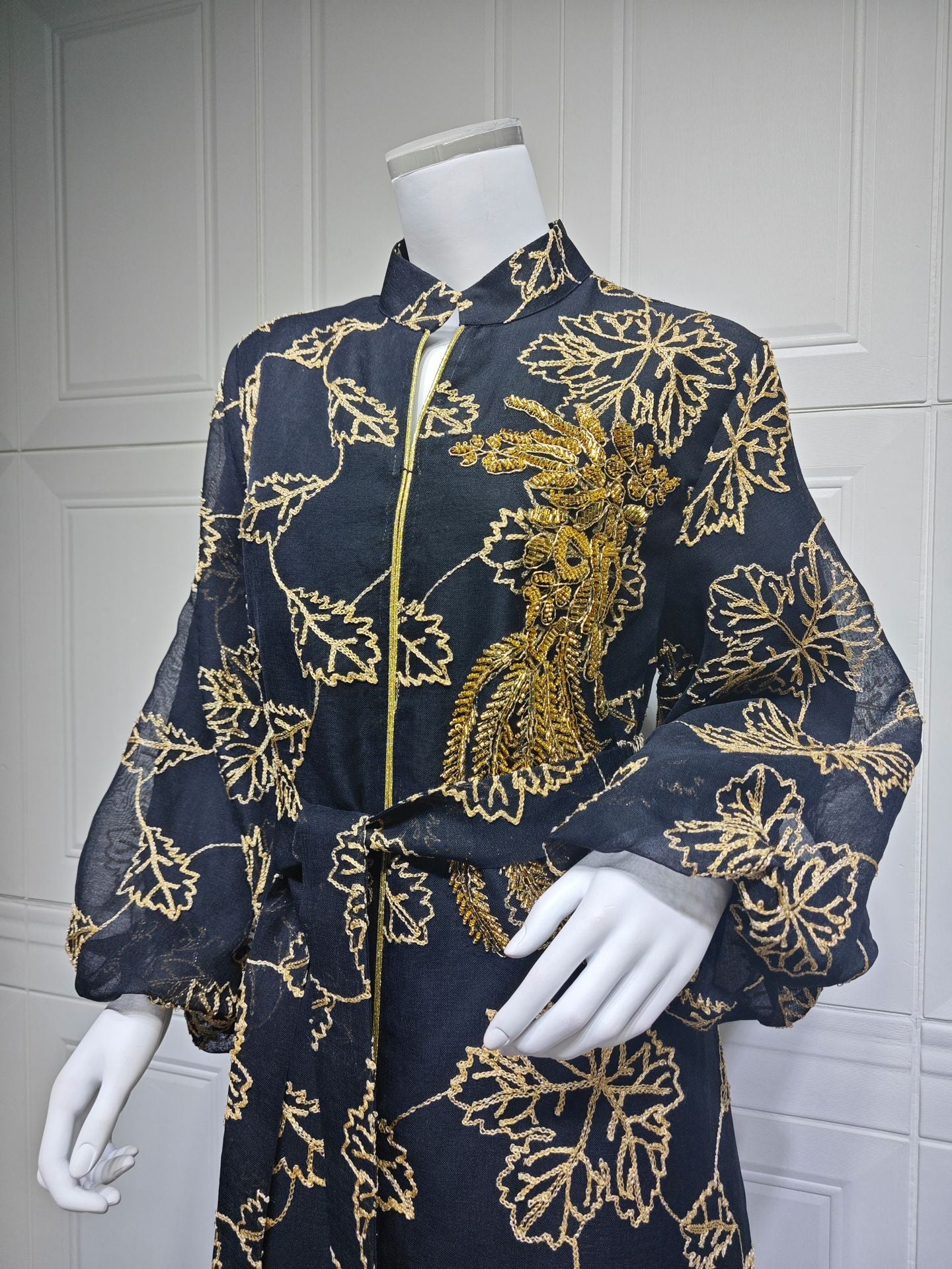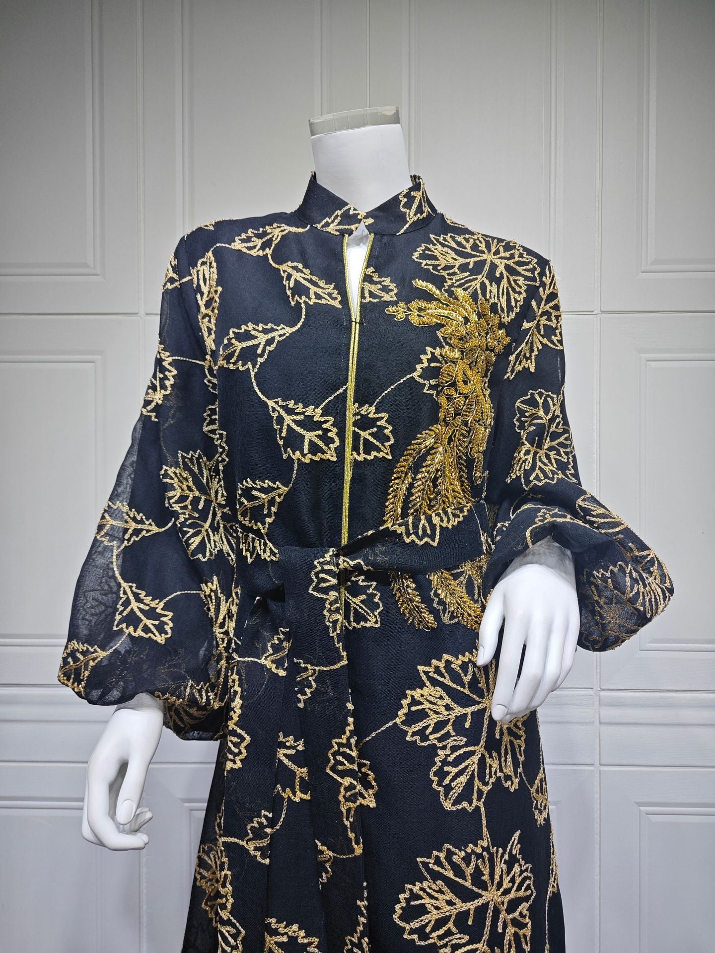 HASA HS1245 Ombré Abaya Loose Fashion Robe with Pleated Patchwork Detailing