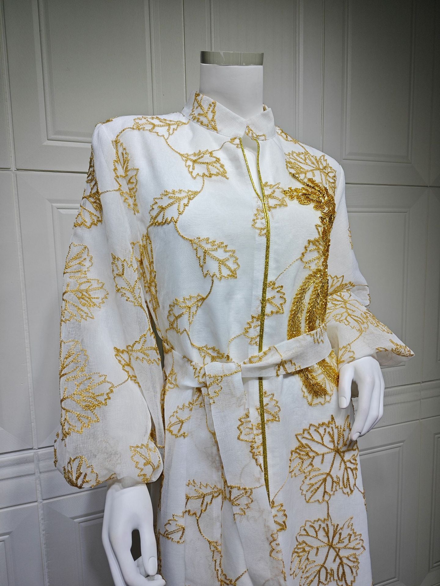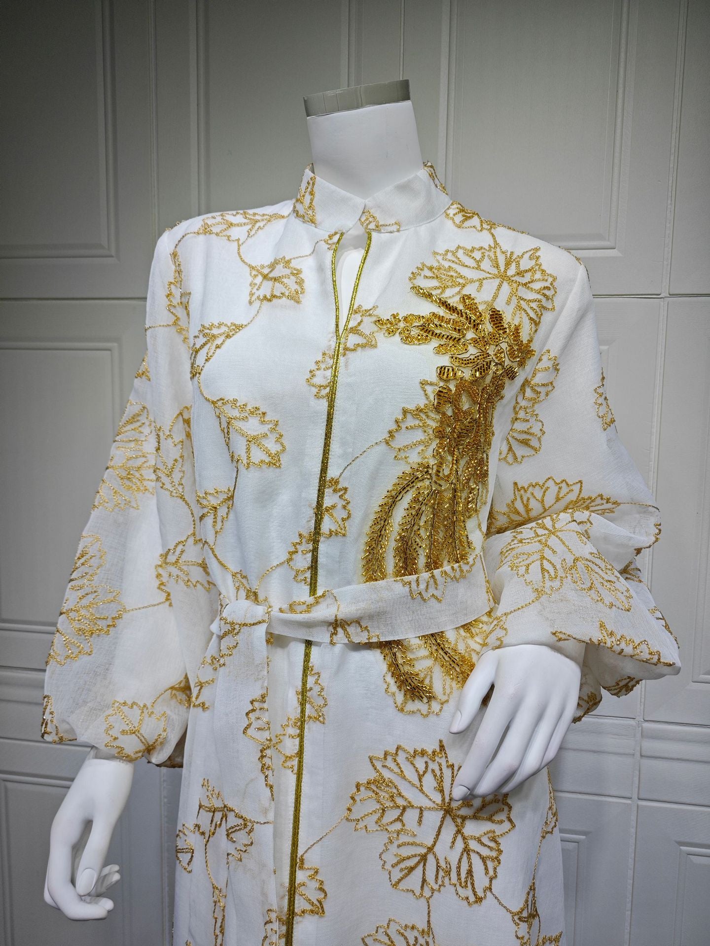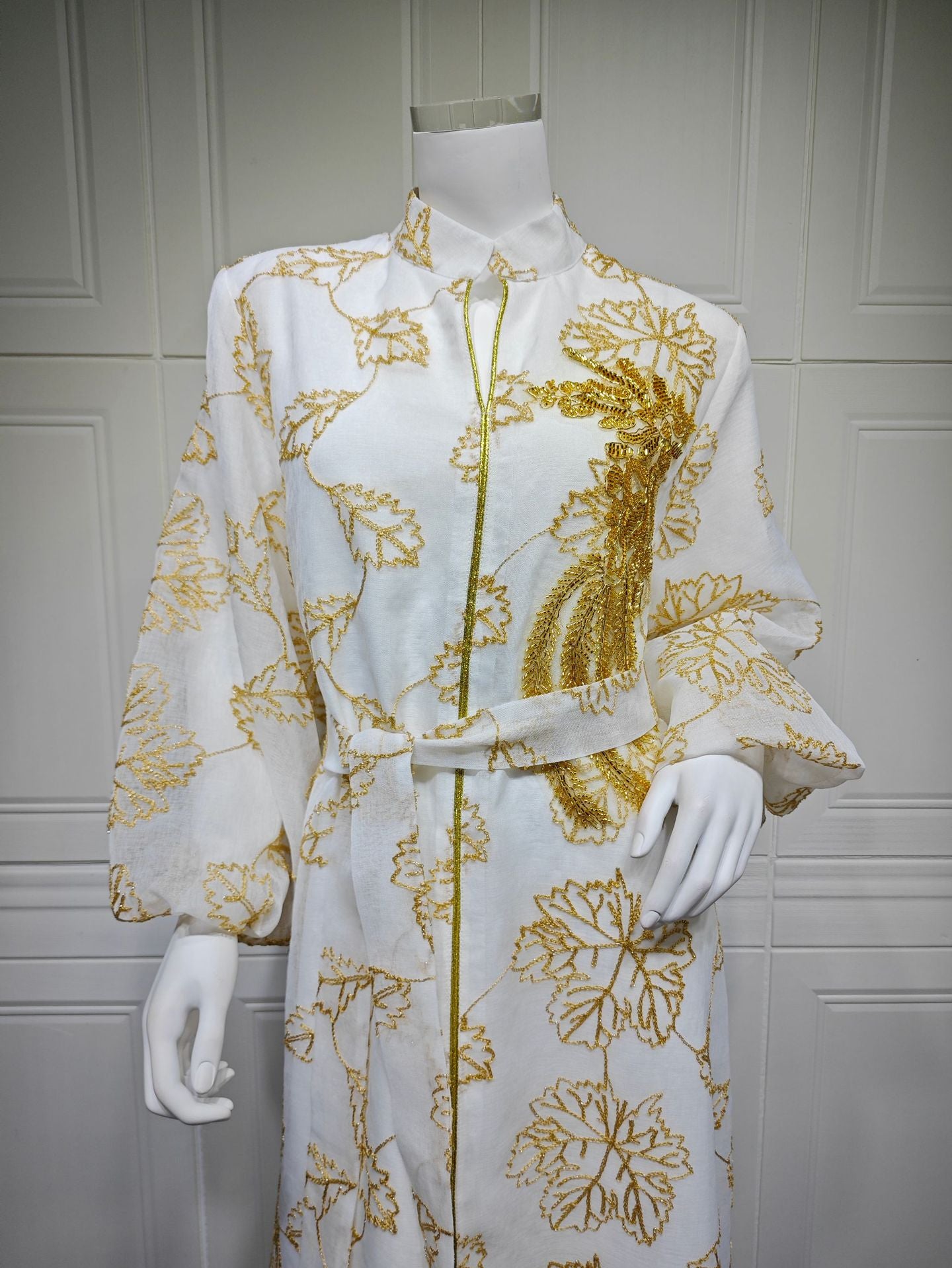 HASA HS1245 Ombré Abaya Loose Fashion Robe with Pleated Patchwork Detailing