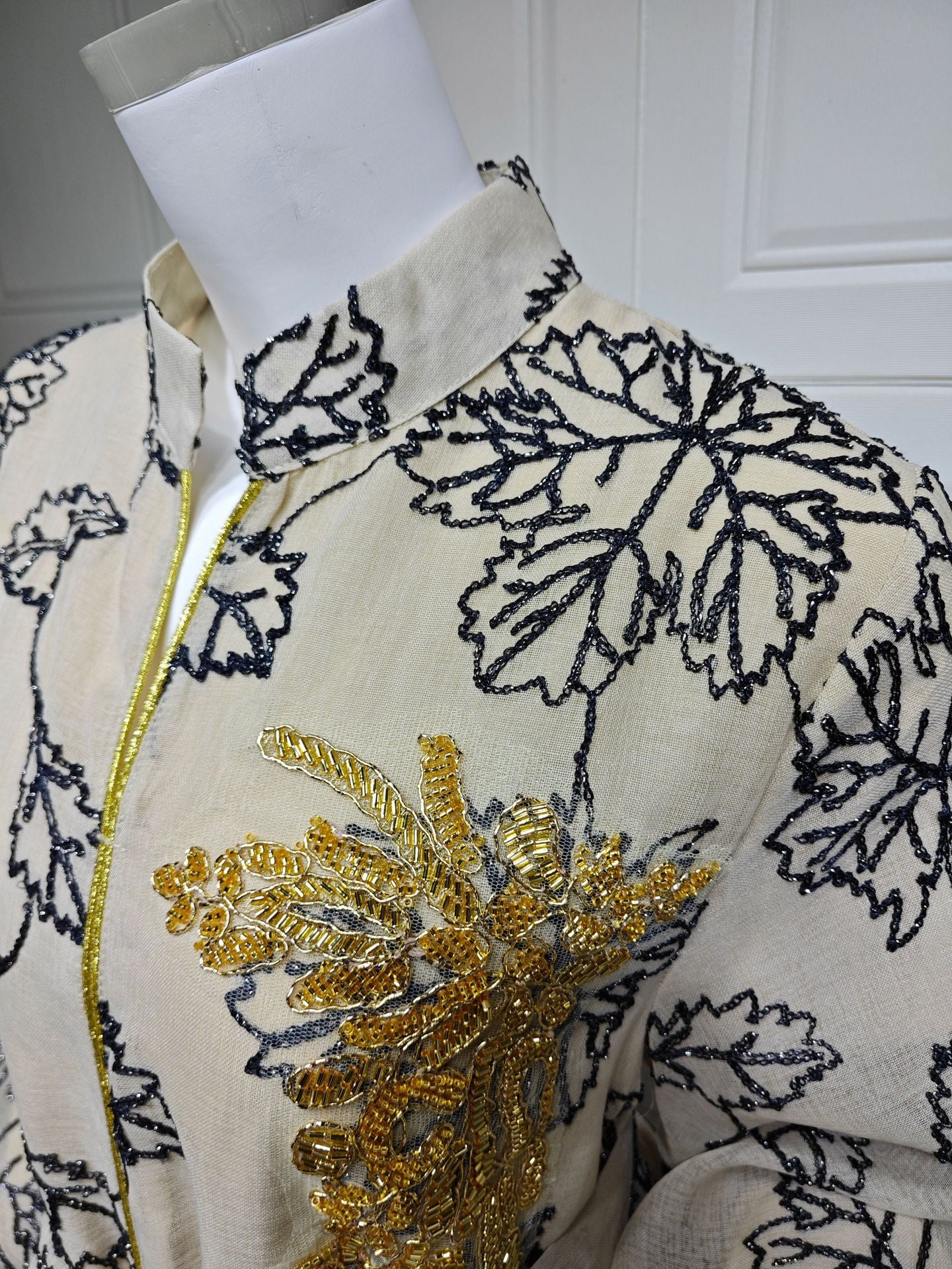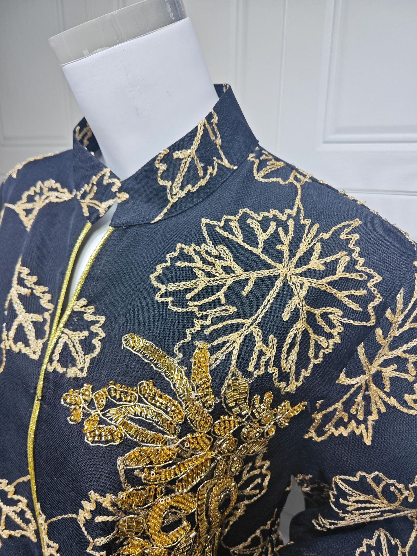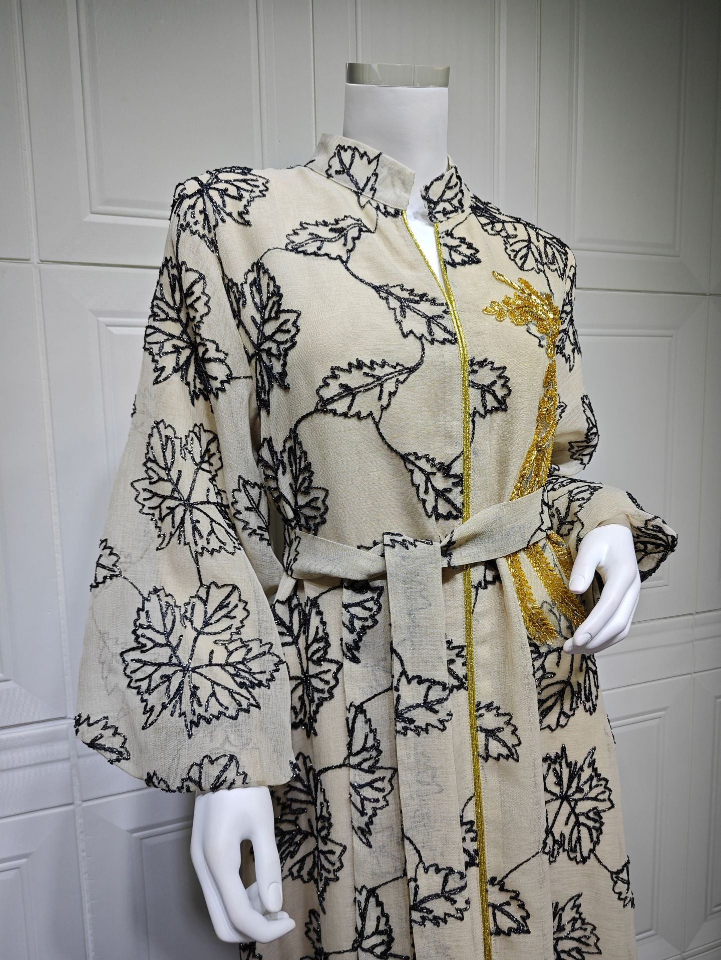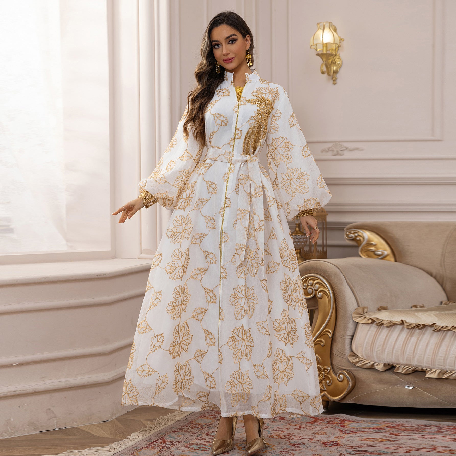 HS6651 Floral Print Long Dress, Elegant Stand-up Collar Evening Gown